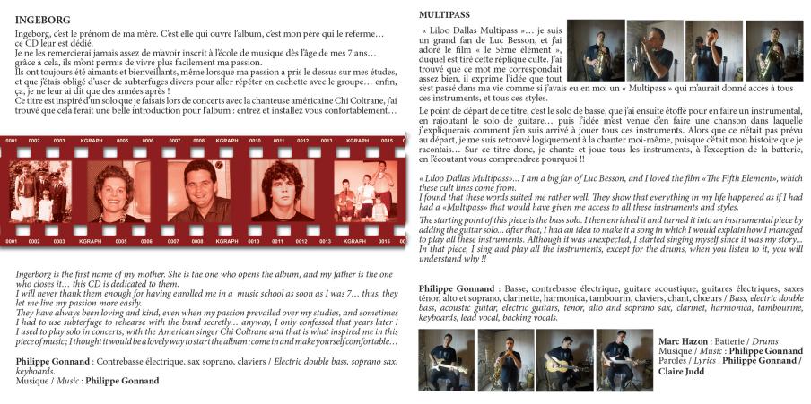 L’album comporte 12 titres originaux, 7 instrumentaux et 5 chantés (dont 2 par moi-même). Oscillant entre rock, blues, country, soul, funk et jazz, cet album très varié est le reflet de ma personnalité musicale.